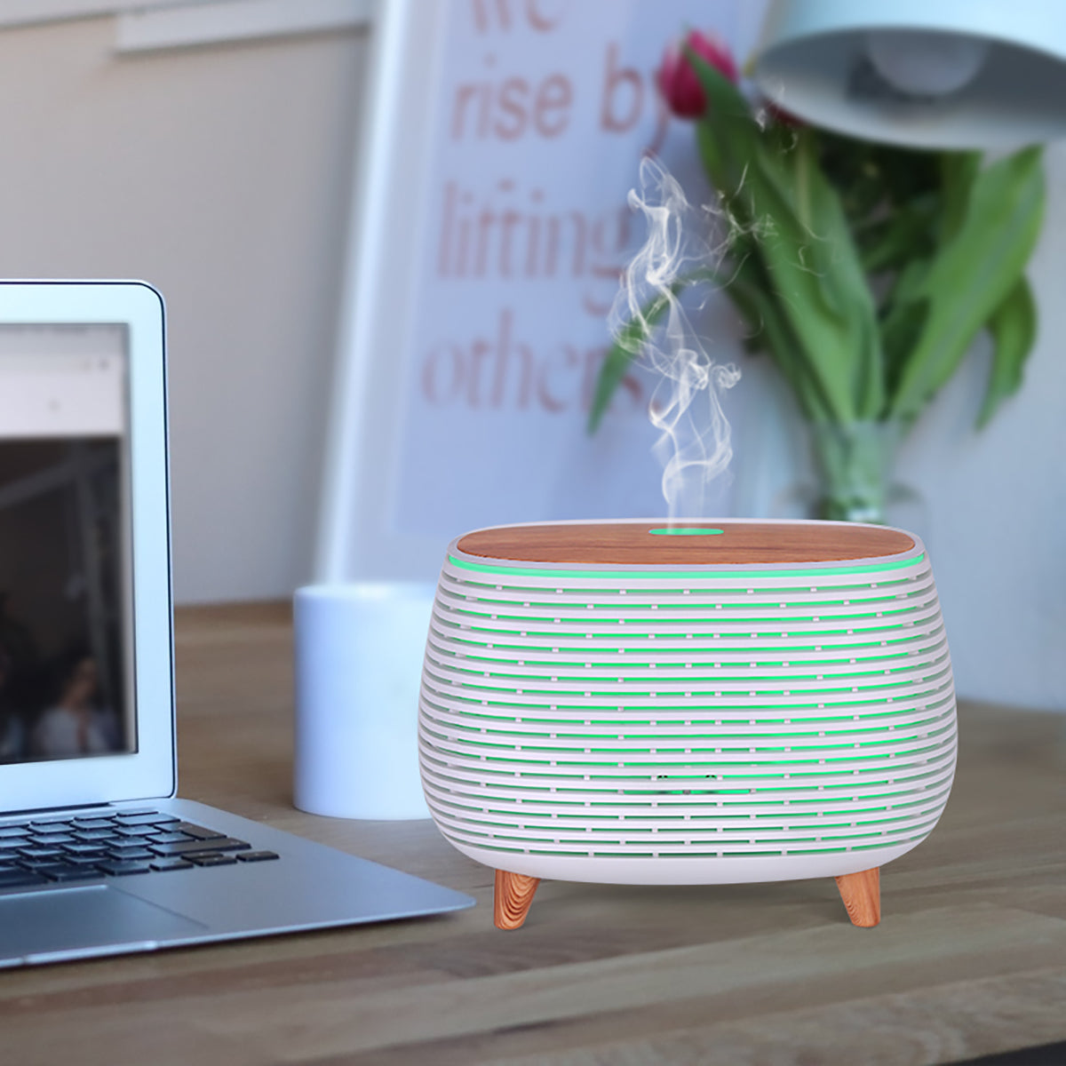 Aspectul elegant este combinat frumos cu modurile inteligente de abur LED. Puteti pune acest umidificator pe biroul din