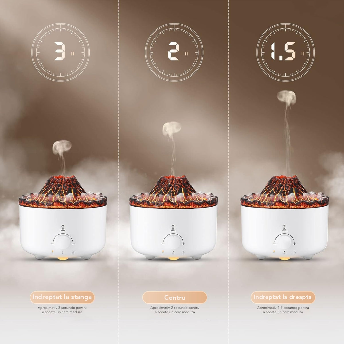 Doua moduri de pulverizare, flacara si vulcan, combinate cu umidificatorul pentru a crea un efect creativ de pulverizare tip meduza, mai ales noaptea, oferindu-va o senzatie romantica.