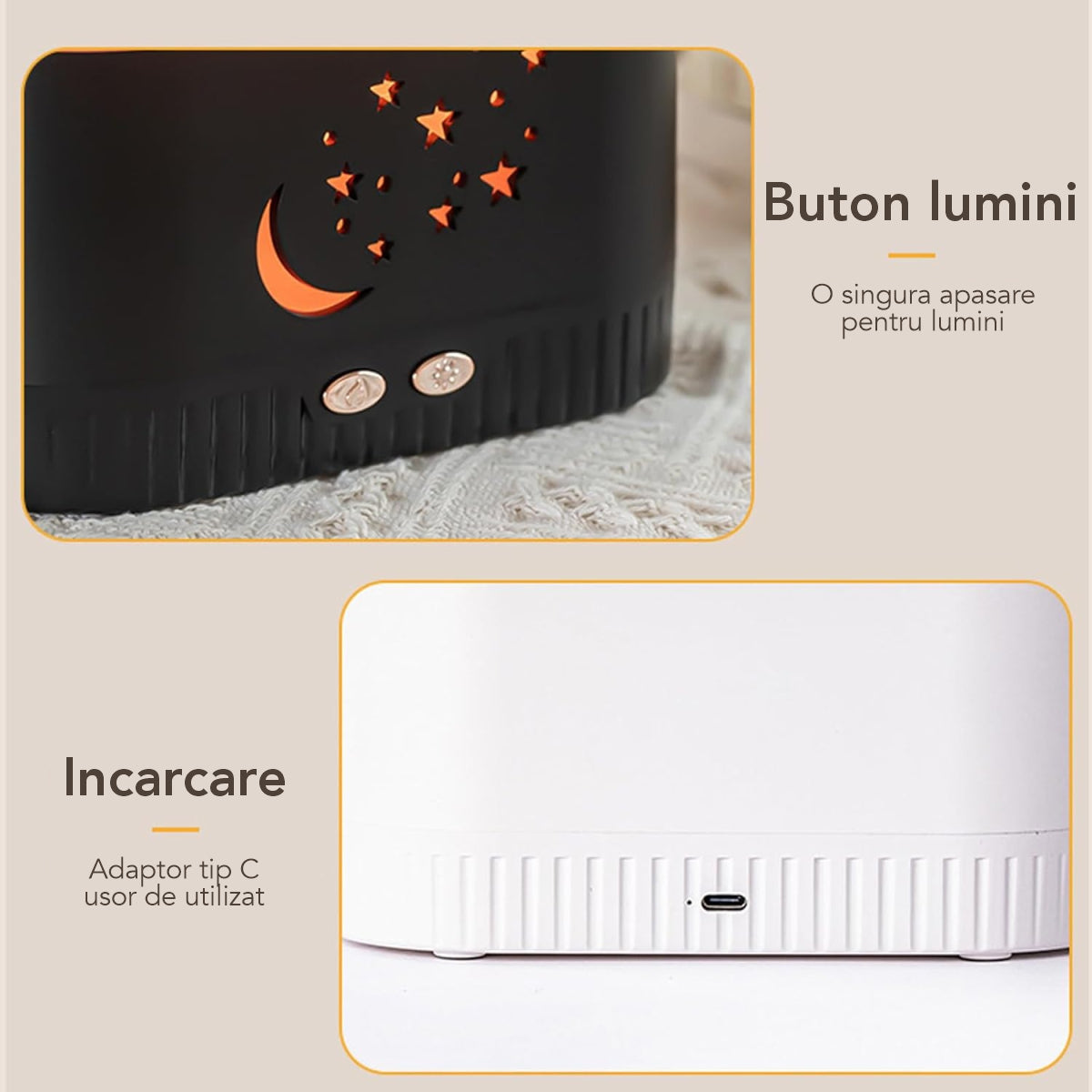 Acest umidificator cu aspect modern este realizat din materiale de inalta calitate, aspectul elegant combinat cu modul inteligent de abur cu LED.