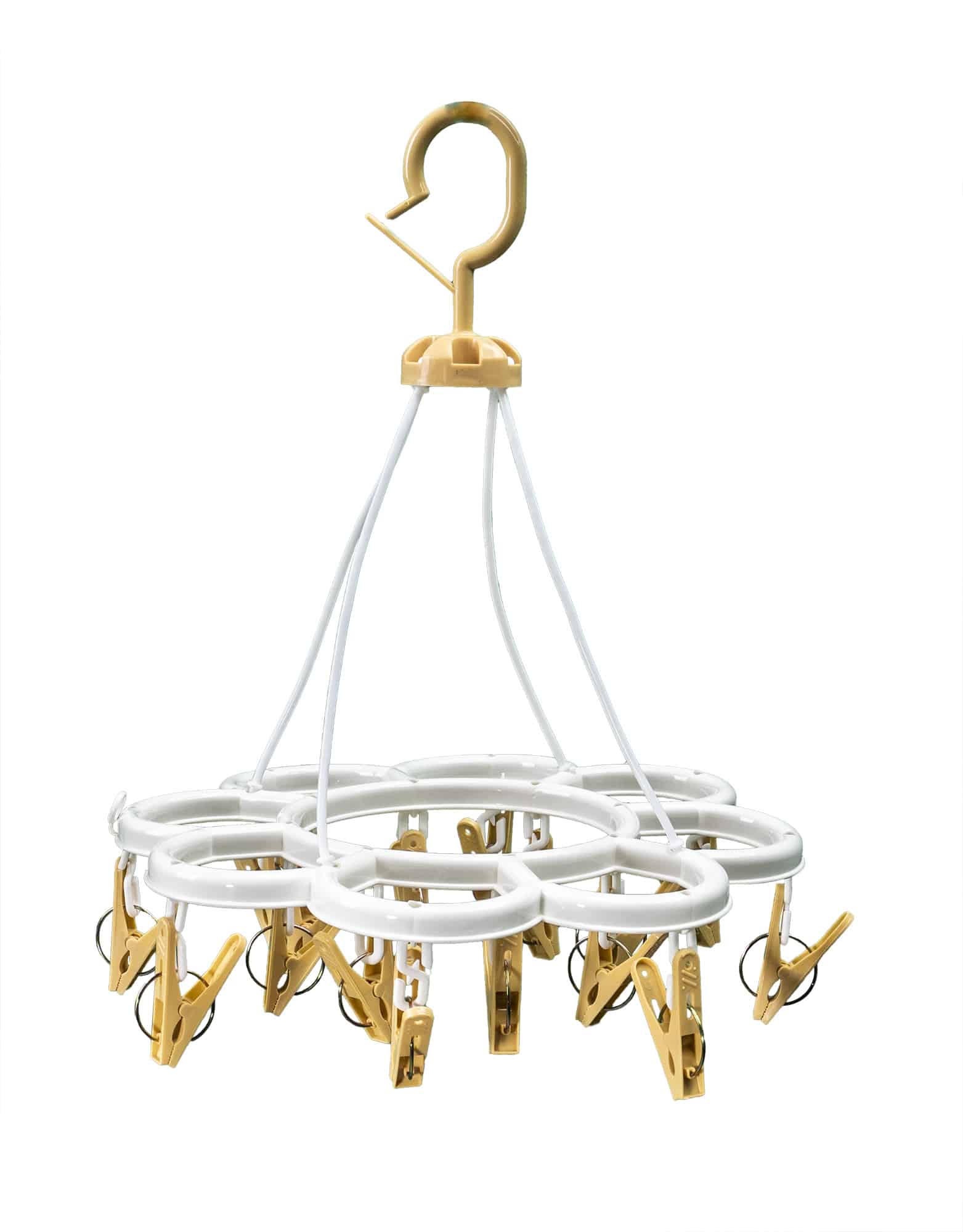 Suport din plastic pentru uscat rufe mici prevazut cu 16 clame si carlig pentru agatat
