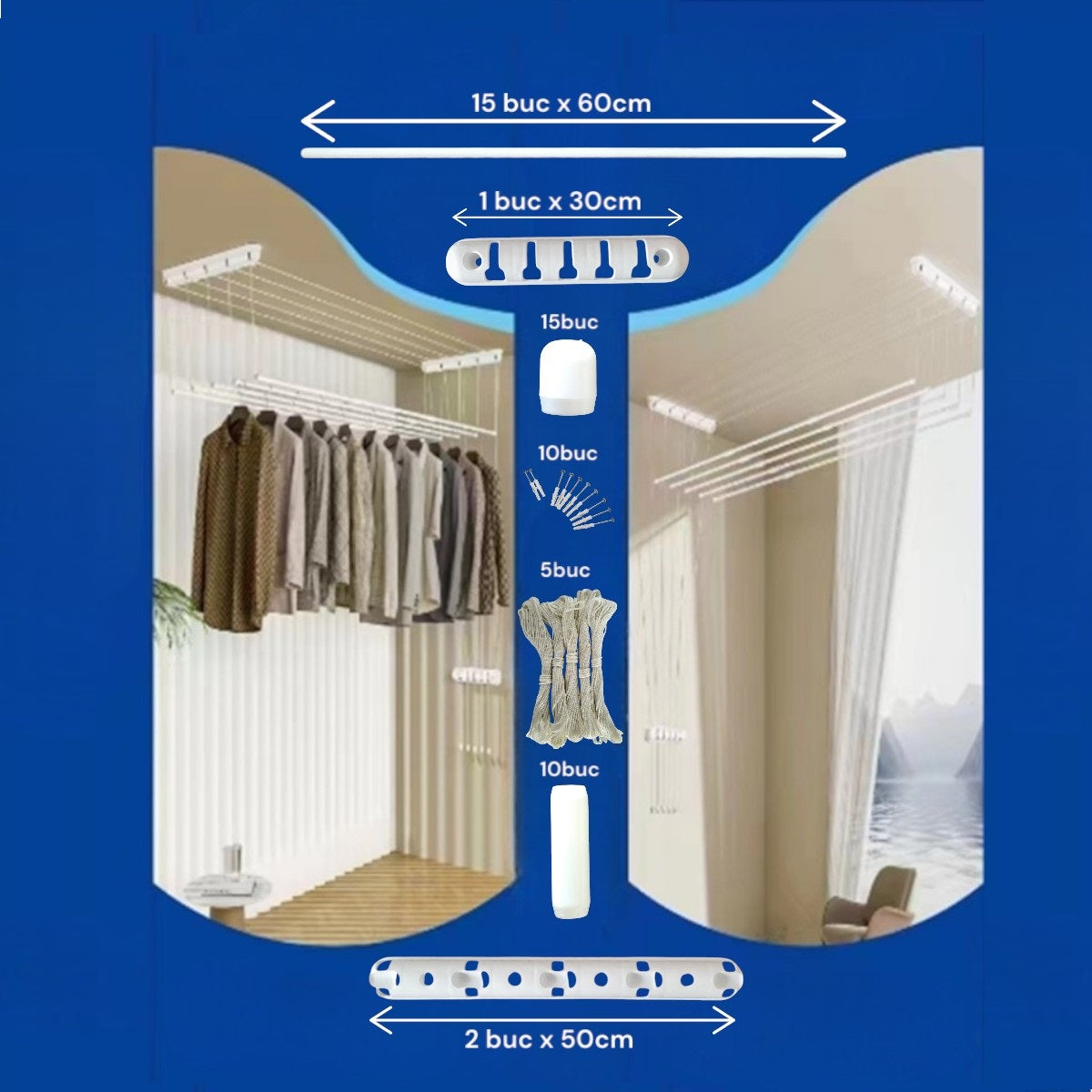 Uscator de rufe de tavan, cu lungimea de 1,8 m, are 5 randuri de bare.